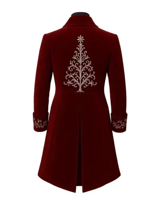 Men’s Festive Christmas Embroidered Red Velvet Long Coat